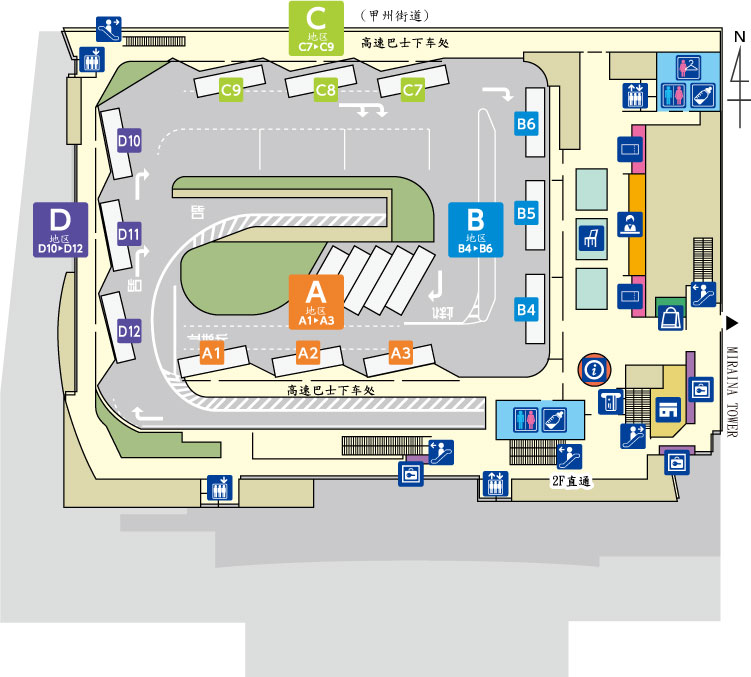 ※点击地图内的图标即可跳转至服务设施的介绍页面。